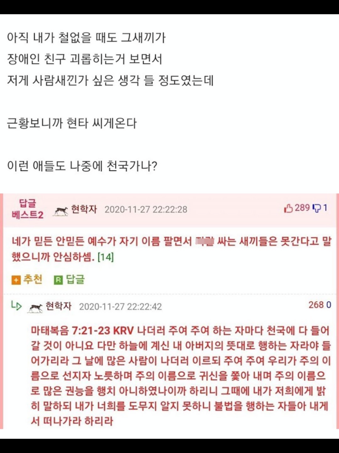 이런 사람들도 교회 다닌다는 이유만으로 천국에 갈 수 있을까요?