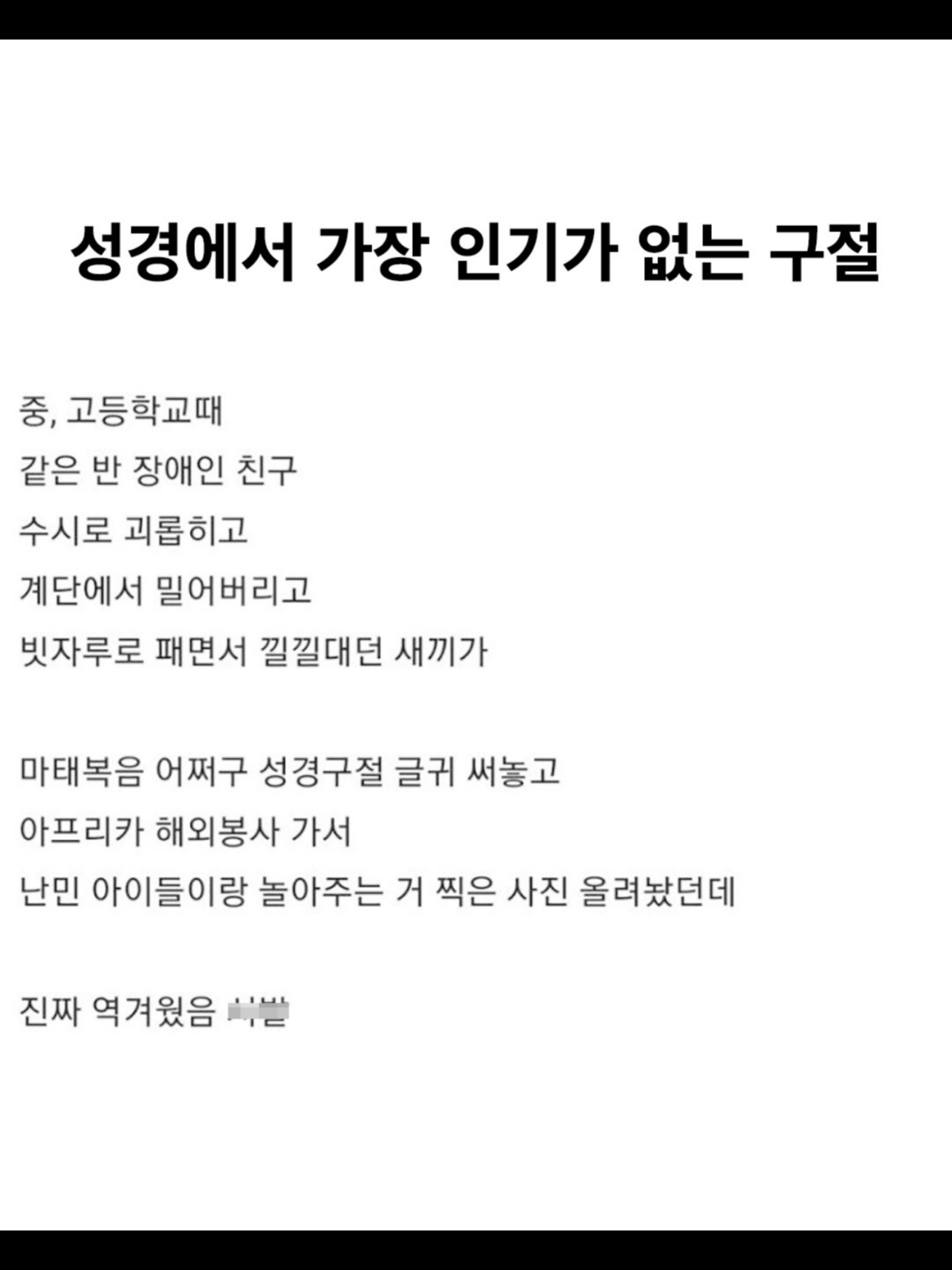 더 위험한 사람은 나쁜 짓을 하면서 "나는 교회 다니니까 괜찮아"라고 착각하는 사람입니다.